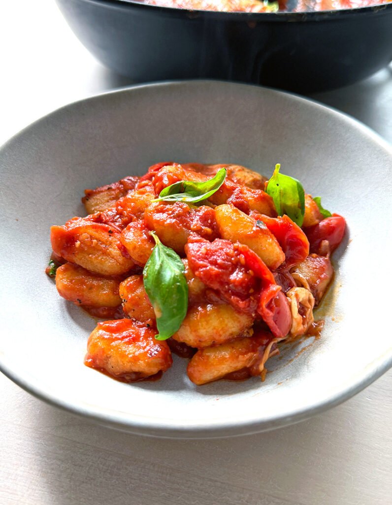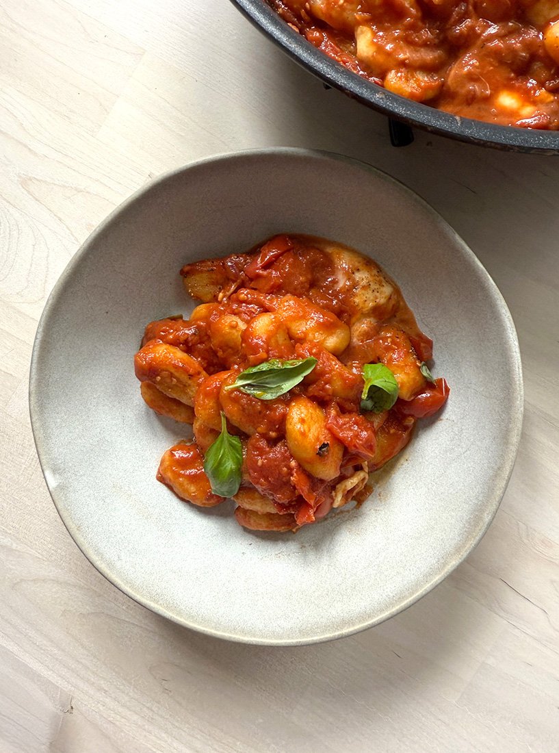 Yhdistä: Lisää gnocchit takaisin pannulle ja sekoita kastikkeeseen.