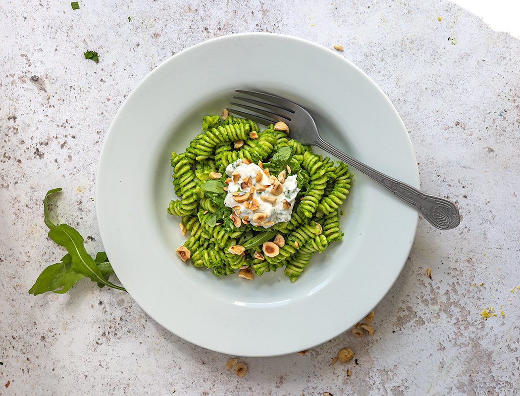 Vihreä-pasta-rucolalla-ja-maustetulla-ricotalla-2